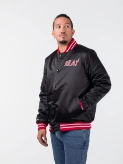 Mitchell & Ness Heavyweight Satin Jacket Herren Bomberjacke Schwarz Rot