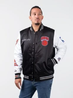 Mitchell & Ness Team Origins Varsity Satin Jacket Herren Bomberjacke Schwarz Weiß Rot
