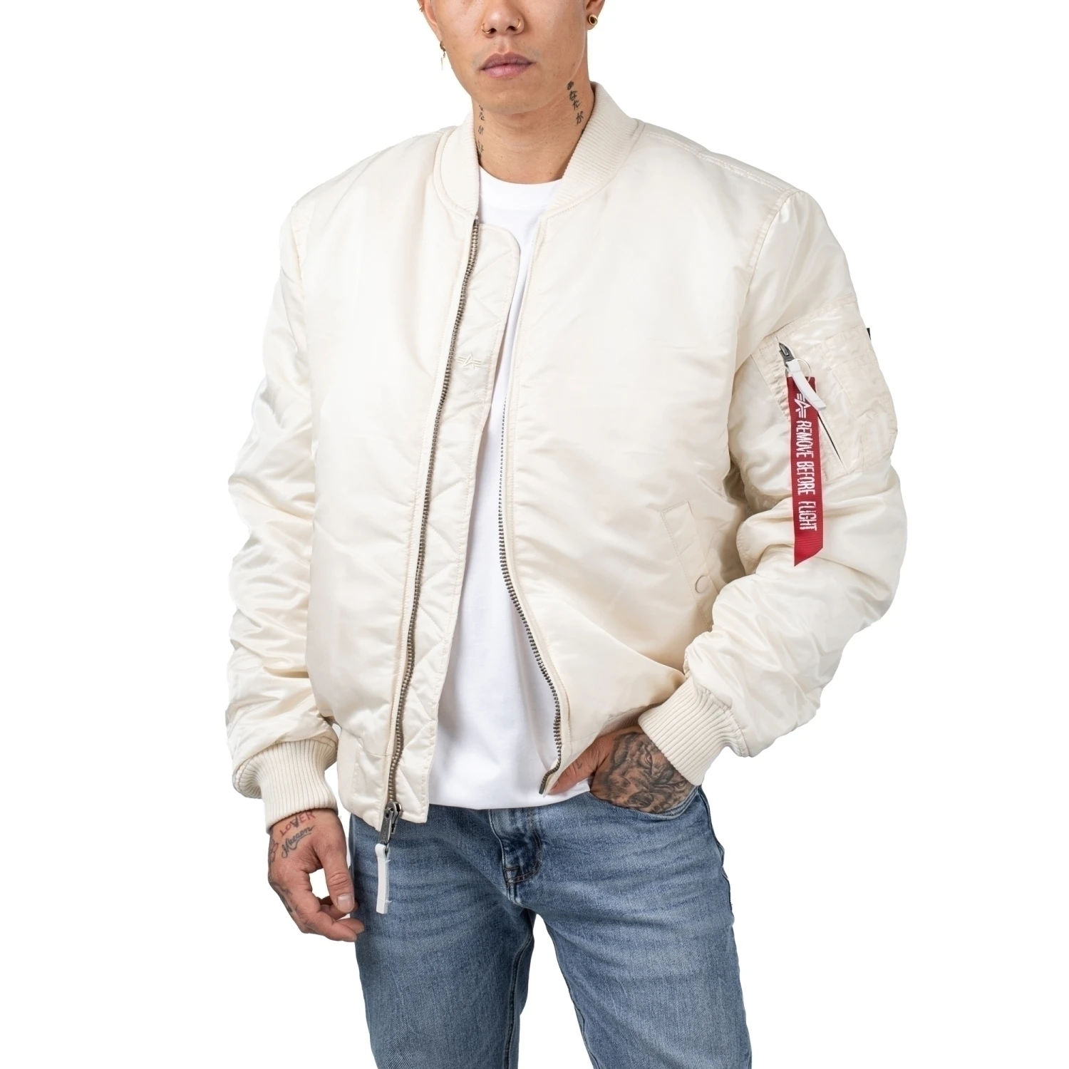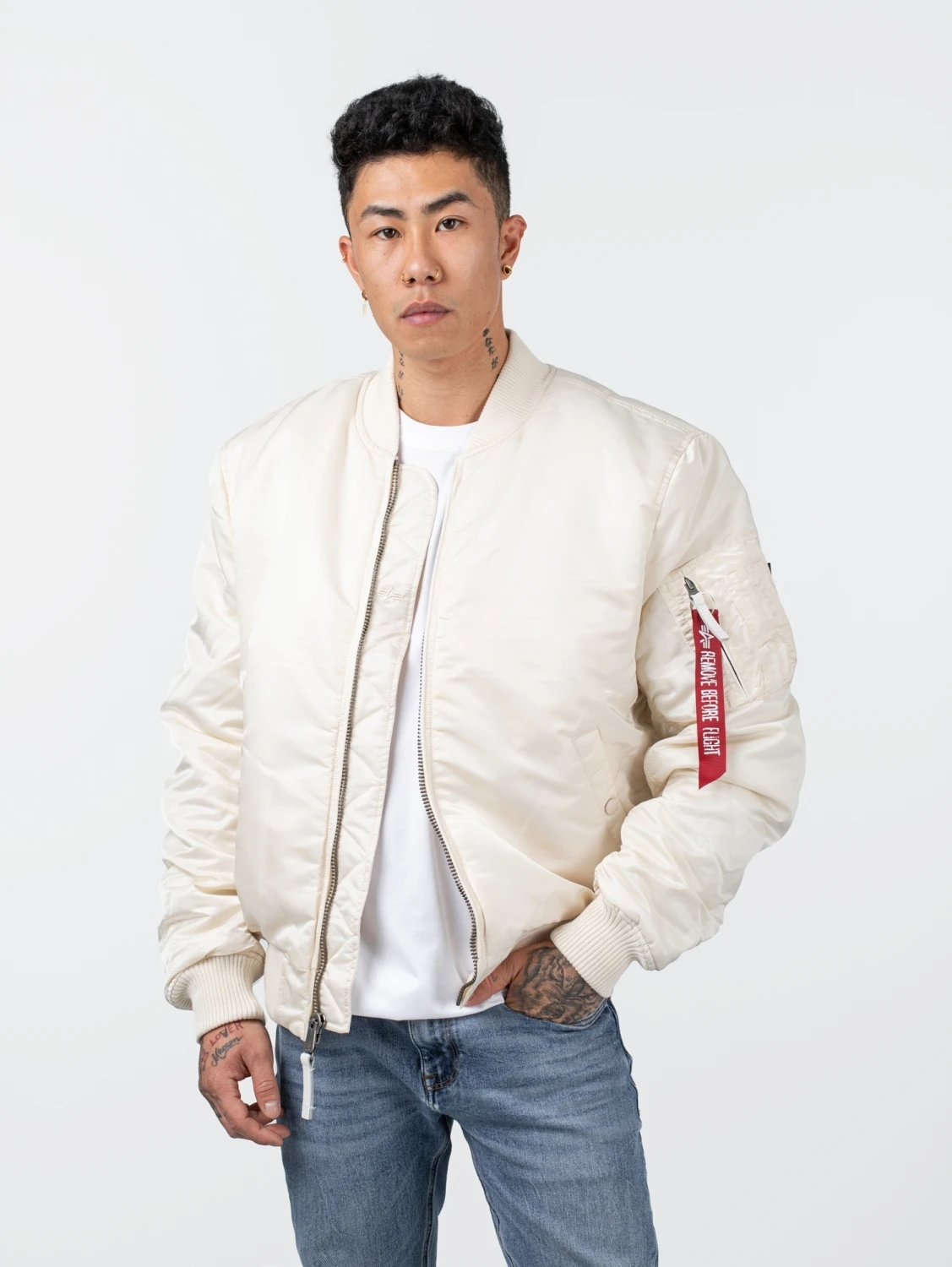 Die MA-1 VF 59 ist die schlankere Version der regulären MA-1. Obwohl der Name zugegebenermaßen etwas enigmatisch erscheint, muss man nicht Alan Turing sein, um ihn zu entschlüsseln: VF steht für „Vintage Fit“, also einen im Vergleich zur MA-1 etwas näher am Körper liegenden Schnitt. Die Ziffern 59 weisen auf das Jahr 1959 hin, in dem die ursprüngliche MA-1 herausgebracht wurde. Die VF 59 ist also die perfekte Wahl für jeden, der zwar Fliegerblousons mag, sich aber an der regulären Passform stößt. Die VF 59 ist nicht so massig wie ihre Vorlage und damit ideal für einen glatten Look. Natürlich ist auch dieses Modell aus unserem robusten Flight Nylon gemacht. Auch die Wattierung und das Innenfutter entsprechen der heutigen MA-1. Unser Tipp für Profis: Man sollte die MA-1 VF 59 Jacke unbedingt mit einem klassischen Boxerhaarschnitt und einer draufgängerischen Attitüde kombinieren.