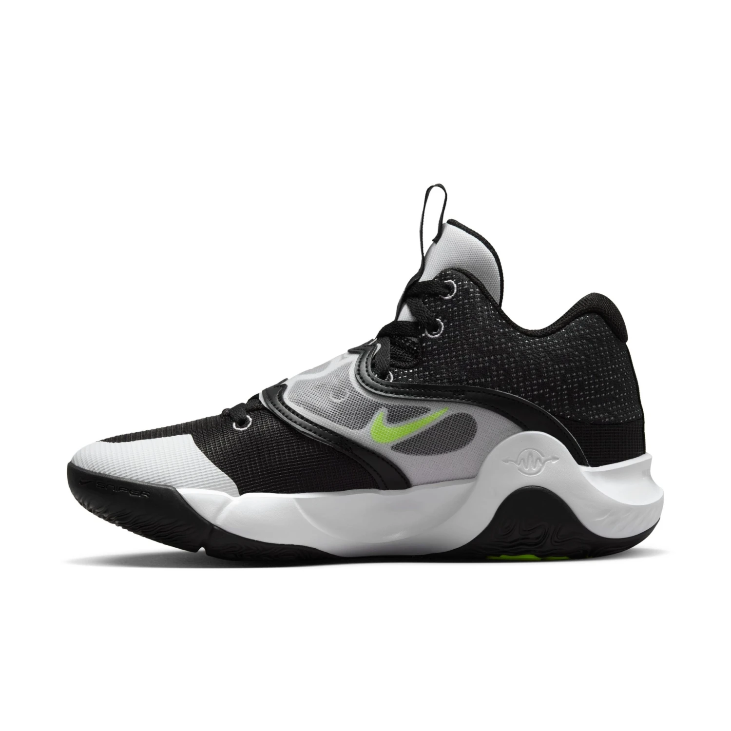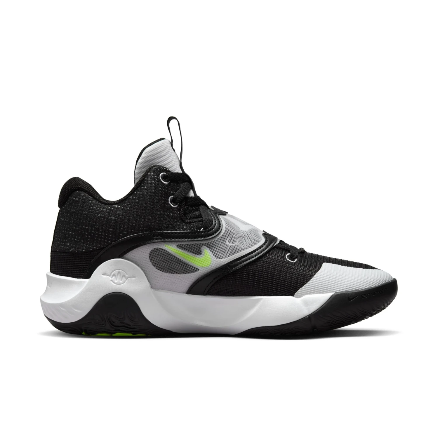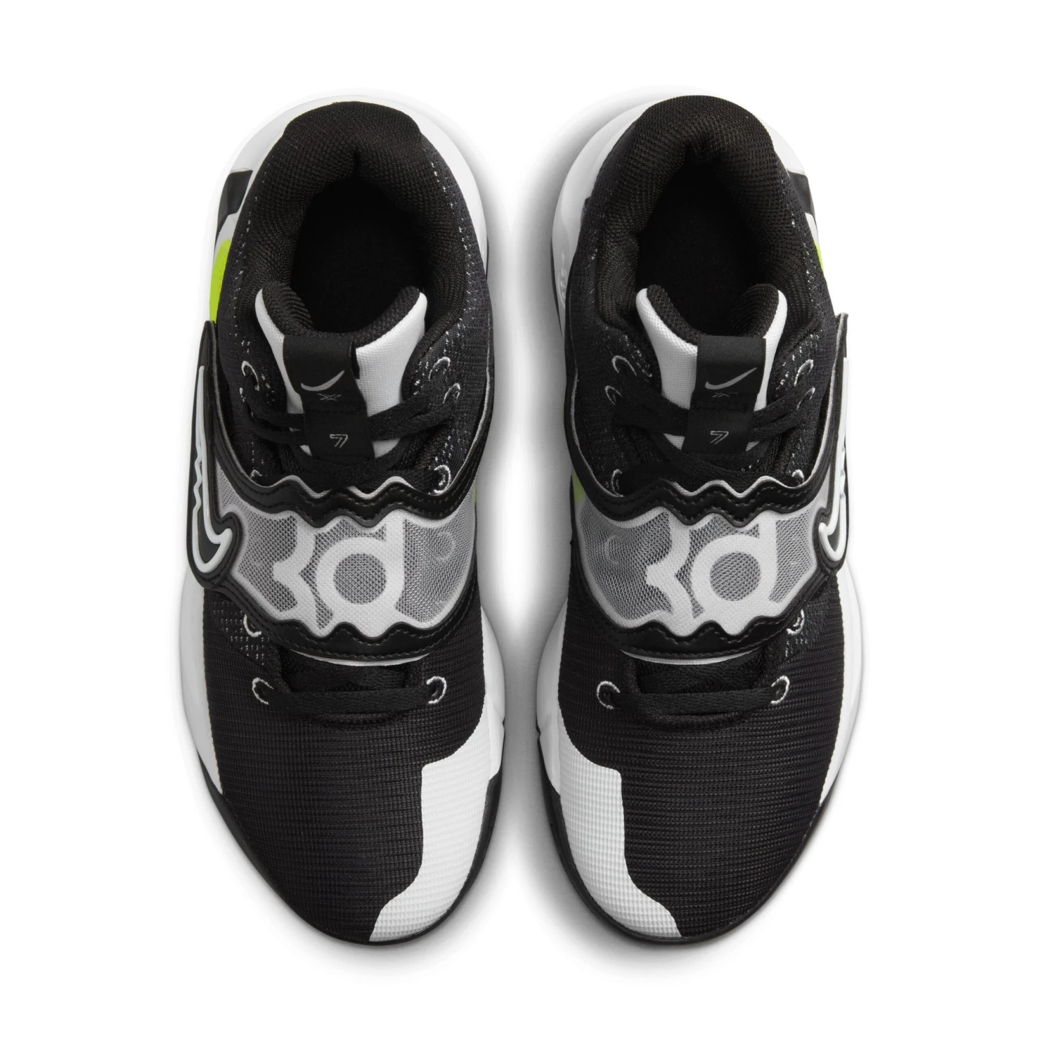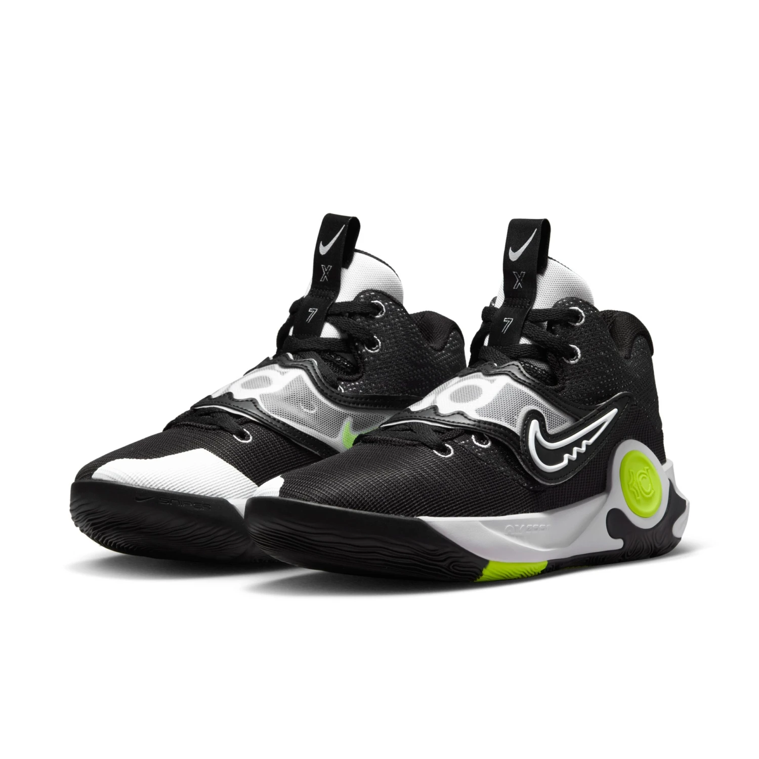 Ein Zoom Air-Element im Vorfuß bietet eine federnde, reaktionsfreudige Dämpfung. Die Materialien im Schuhkragen sorgen für ein weiches Tragegefühl und das strapazierfähige Material im Zehenbereich wurde für Halt und Performance entwickelt. Ein Gummielement an der Seite sorgt für einen „gruseligen“ Slim Reaper-Look, während die Nummer „7“ von KD und das „X“, die 10. Version des KD Trey 5 auf der Zungenschlaufe, unmissverständlich zeigen, dass dieser Schuh zu KD gehört.