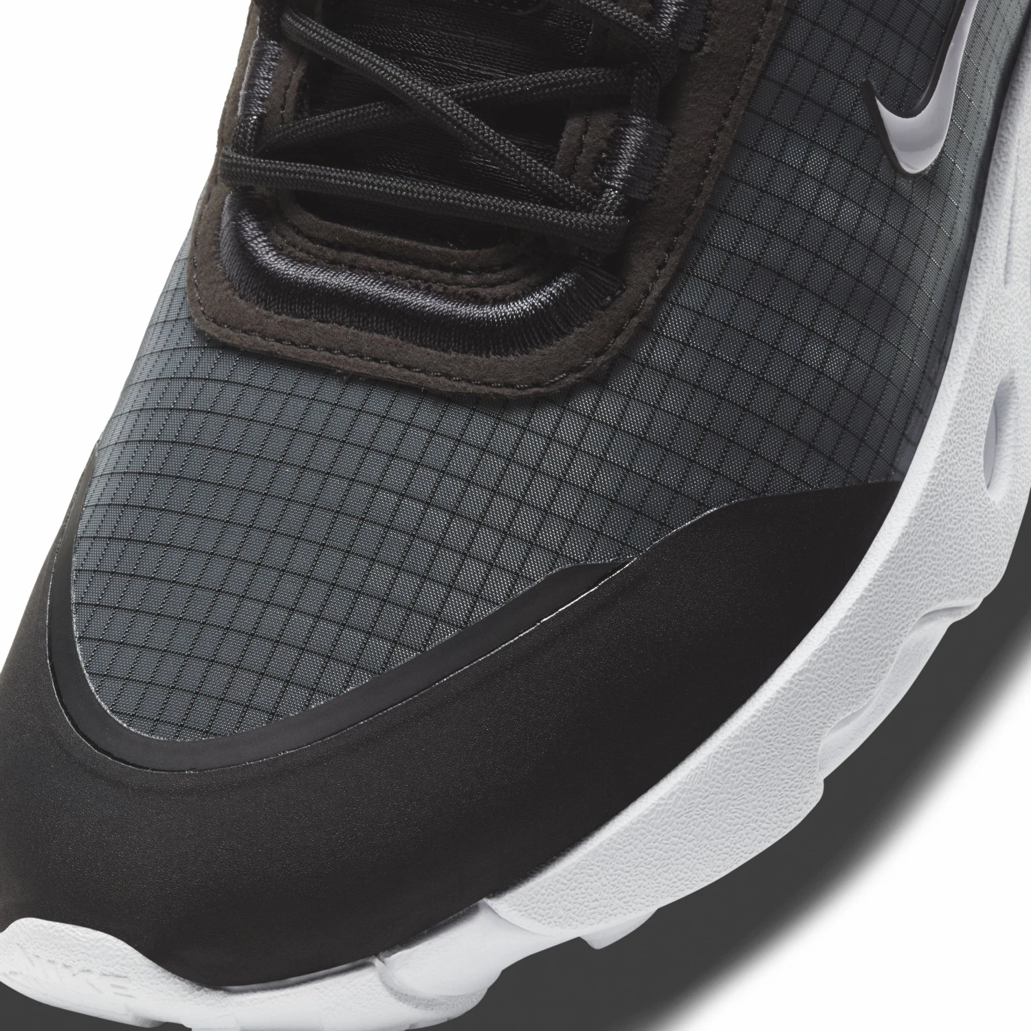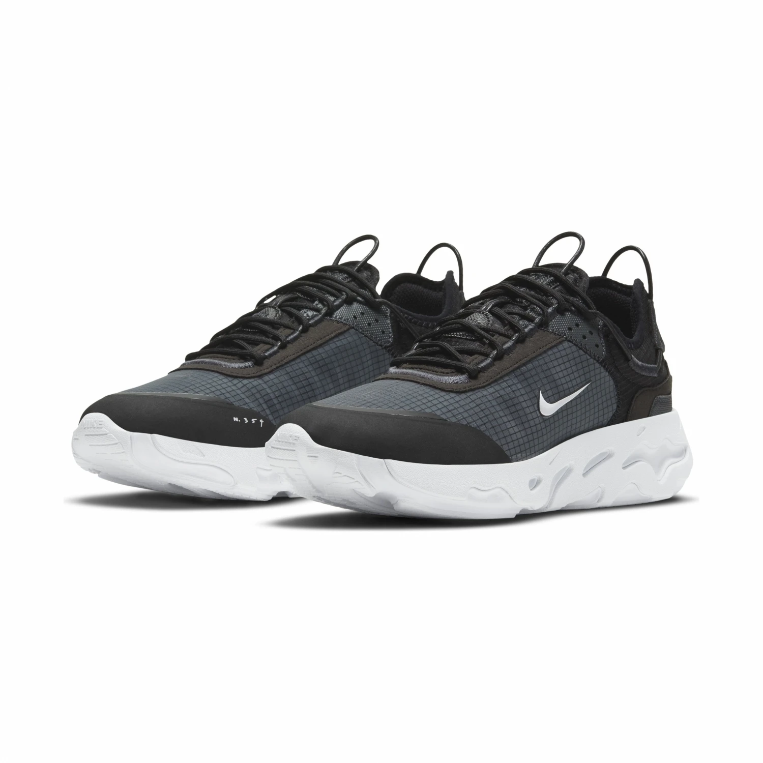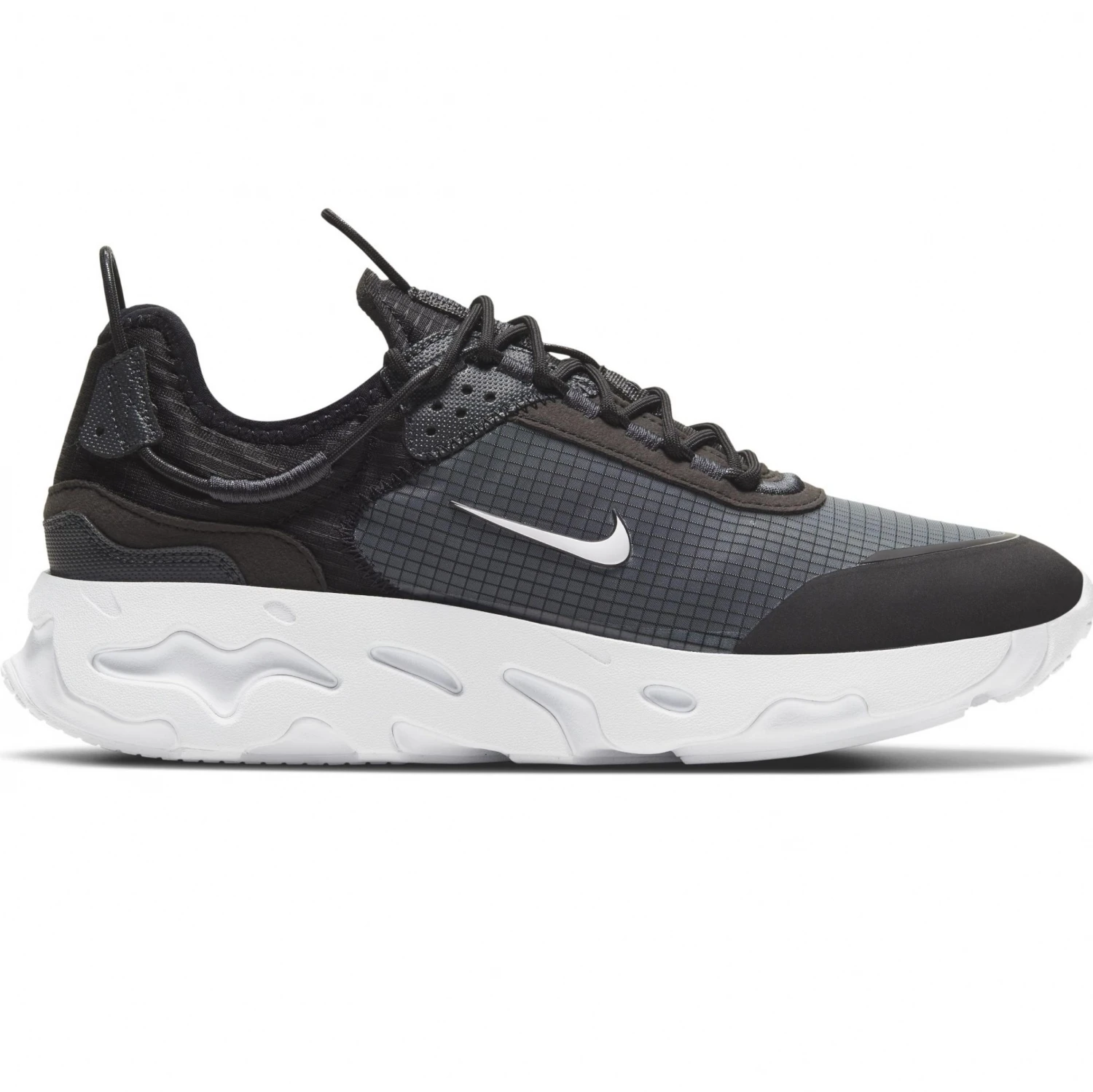 - Die neu gestaltete Mittelsohle aus React-Schaumstoff erzeugt eine wellige, futuristische Ästhetik, die an der Ferse für ein stromlinienförmiges Aussehen nachgeahmt wird.